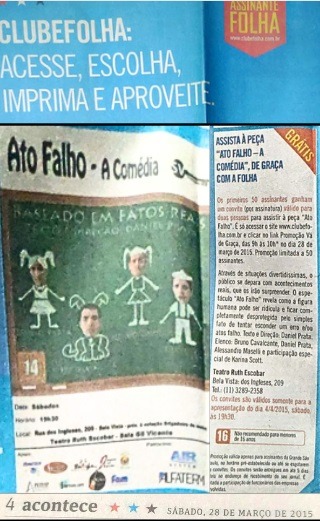 Jornal Folha de São Paulo - Ilustrada/ acontece - Março/2015 - pág.04