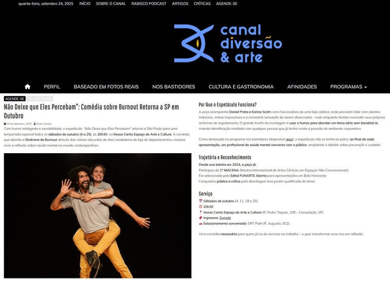 Site - CANAL DIVERSÃO E ARTE - Setembro de 2025