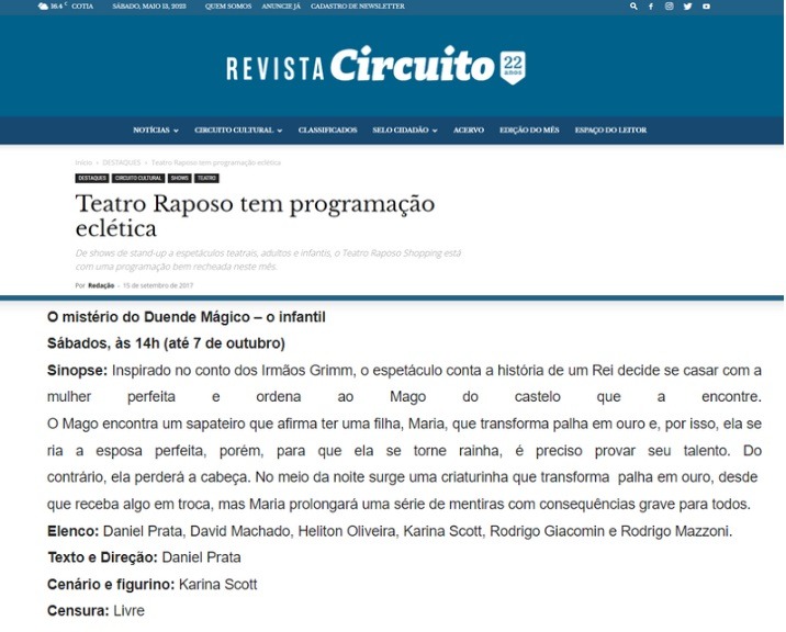 Guia OFF - SP Maio/ 2017 - Ano XXII - nº 246 - pág. 23 Junho/ 2017 - Ano XXII - nº 247 - pág.25 Julho/2017 - Ano XXII - nº 248 - pág. 26
